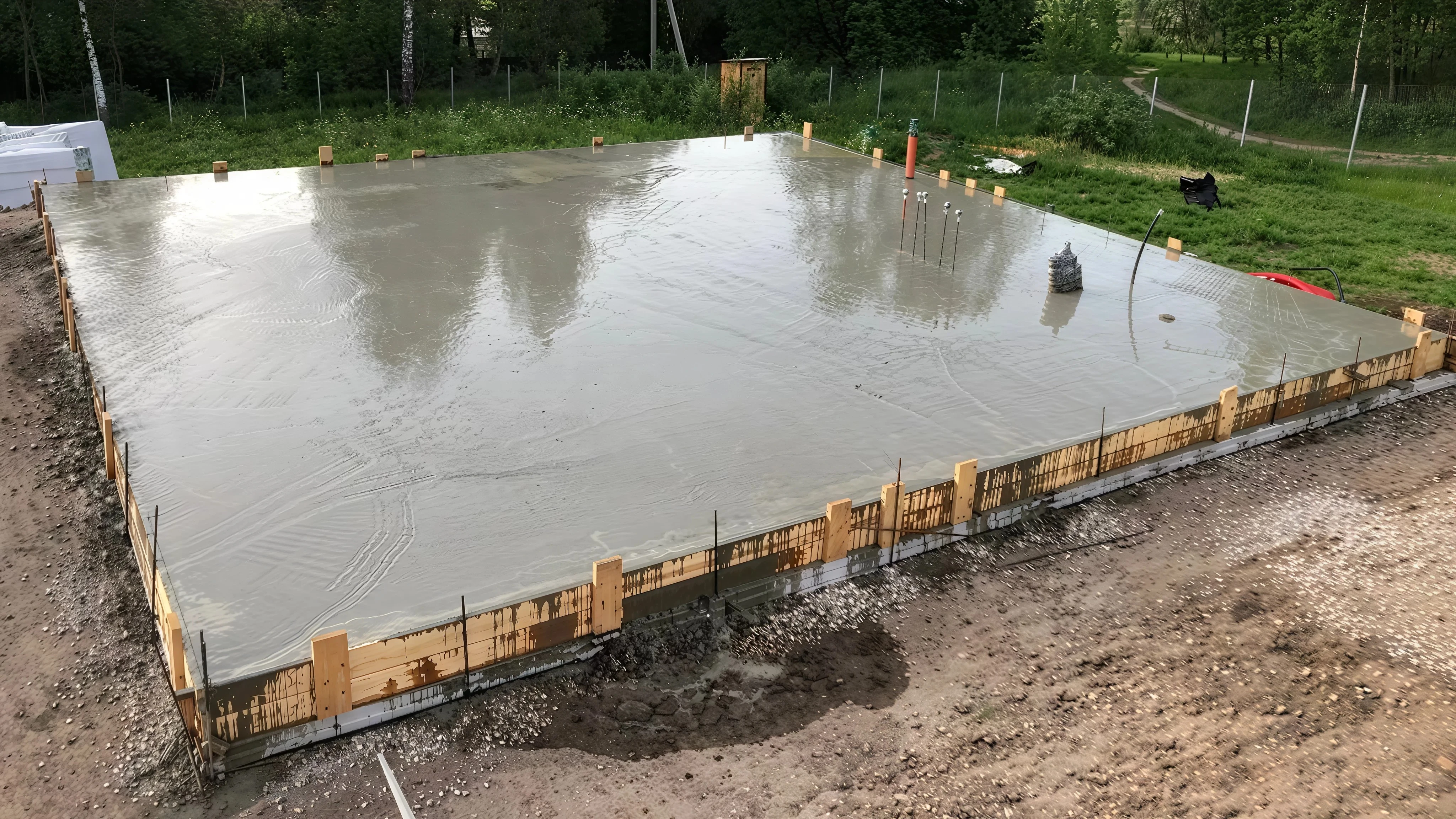 Мы строим основания под частные дома, коттеджи и промышленные здания. В галерее собрали реальные объекты: от подготовки участка и опалубки до заливки плиты и гидроизоляции.